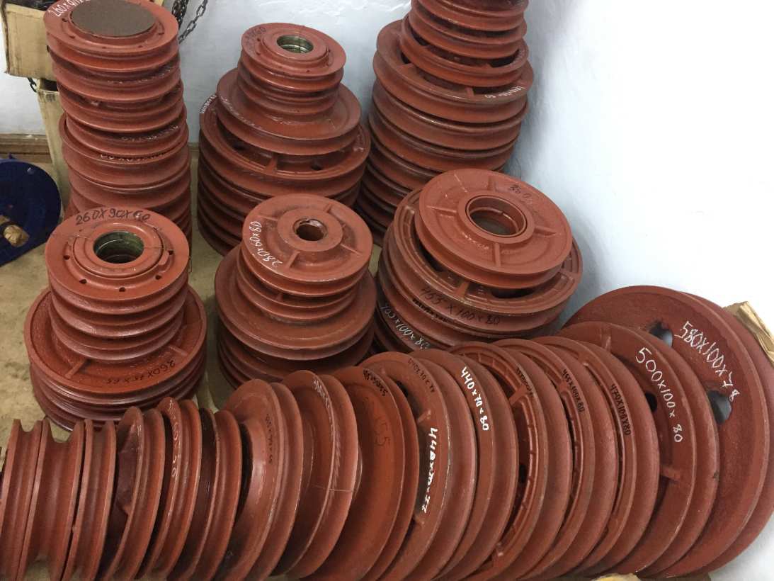 Шкивы обычно изготавливаются из высокопрочной стали или чугуна. Канавки упрочняются термически или имеют сменные вкладыши, защищающие от износа. Подшипники закрываются пыльниками и периодически смазываются.