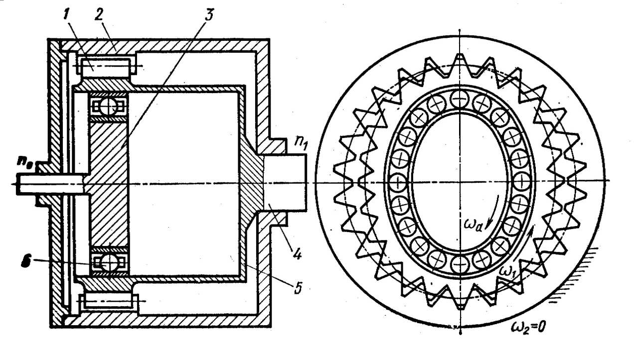 - Генератор волн — элемент овальной формы, установленный на входном валу. При вращении он деформирует гибкое колесо, создавая две зоны зацепления с жёстким колесом.